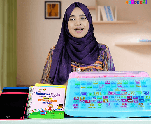 এটি 8.5 inches মাল্টিকালার একটি ট্যাব। ম্যাজিক খাতায় যা যা লেখা শিখবে Tab টি তে practice করবে। এক পাশে Delete বাটনে ক্লিক করলেই মুছে যাবে।